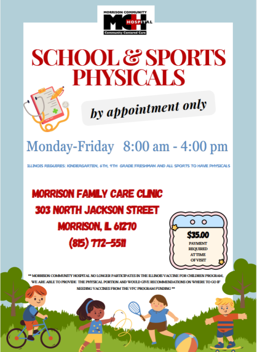 School and Sports Physicals Available Year-Round by Appointment Only.